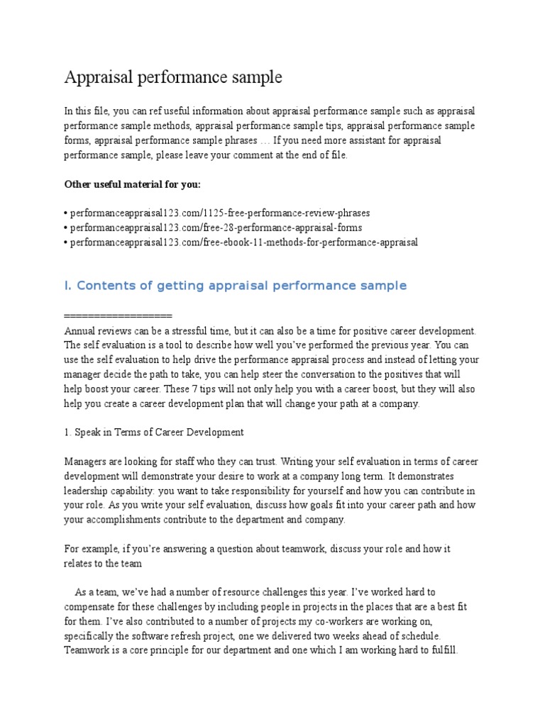Self Performance Appraisal Samples Nengu