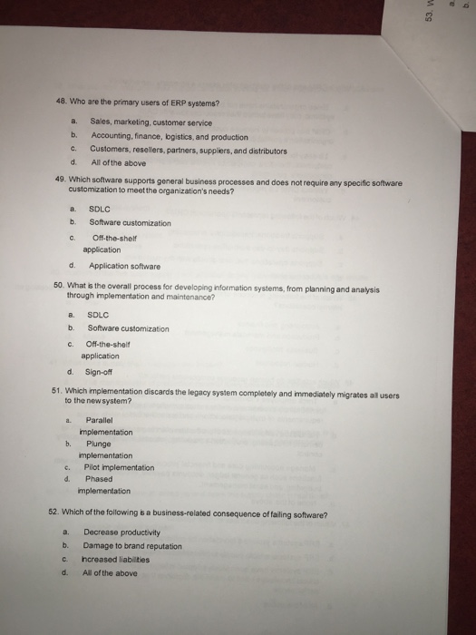 Solved 48 Who Are The Primary Users Of Erp Systems A S Chegg Com